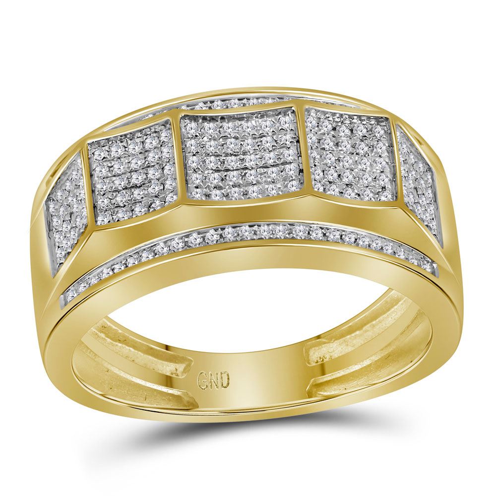 10kt Yellow Gold Mens Round Pave-set Diamond Faceted Cluster Band Ring 1/3 Cttw.