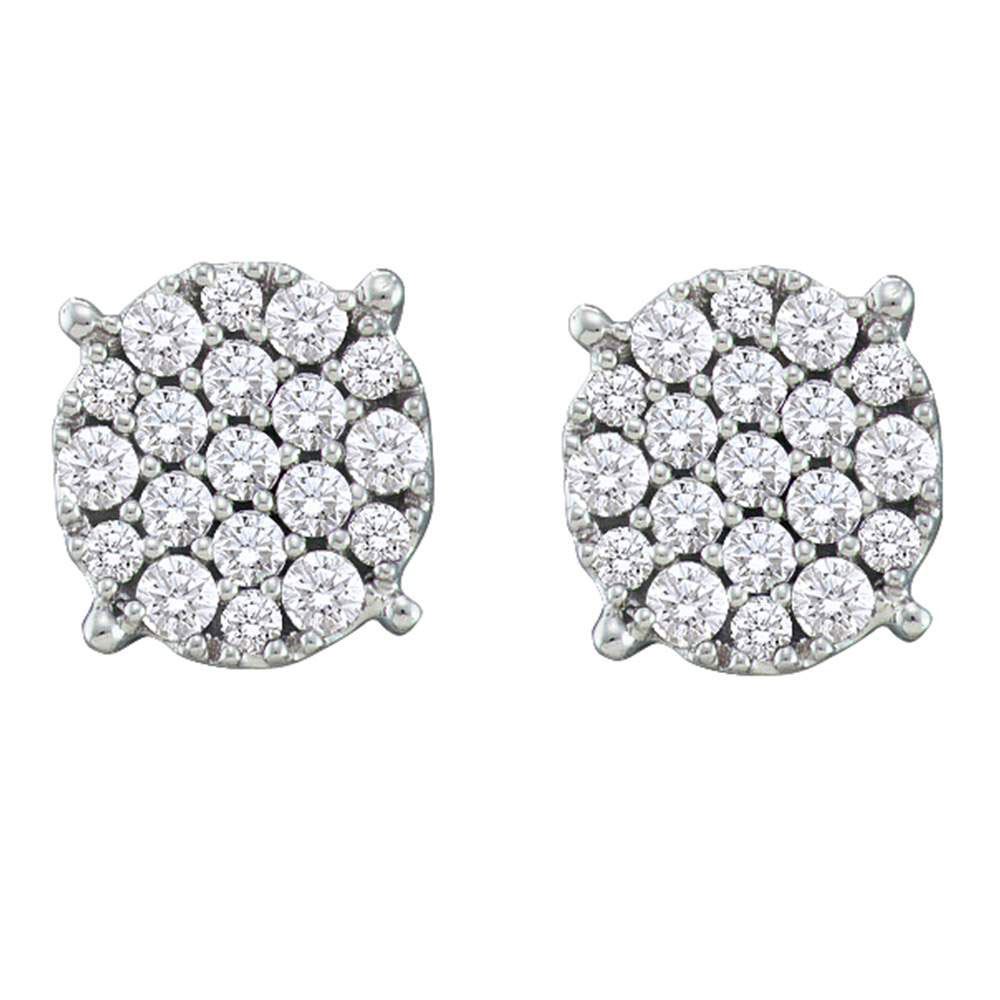REF-51F8N - SKU: GD52931 ---- Round Pave-set Diamond Flower Cluster Earrings 1/2 Cttw 14kt White Gold