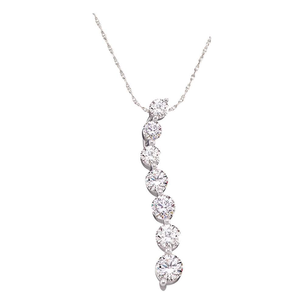 REF-17H3W - SKU: GD43556 ---- Round Pave-set Diamond Graduated Journey Pendant 1/4 Cttw 10kt White Gold