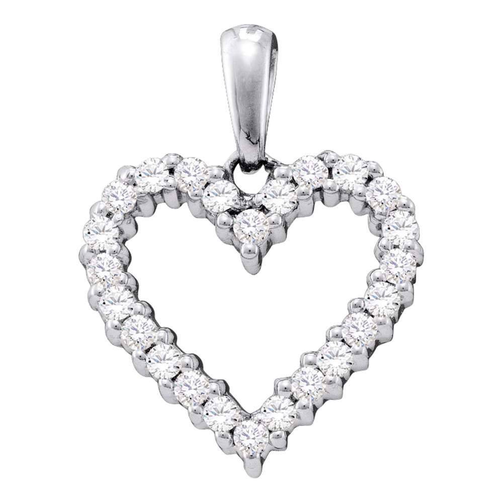 REF-27N3F - SKU: GD57355 ---- Round Pave-set Diamond Heart Pendant 1/3 Cttw 14kt White Gold