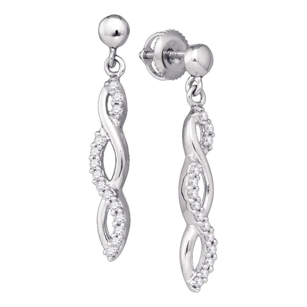 REF-27A3V - SKU: GD61797 ---- Round Pave-set Diamond Journey Dangle Screwback Stud Earrings 1/4 Cttw 10k White Gold