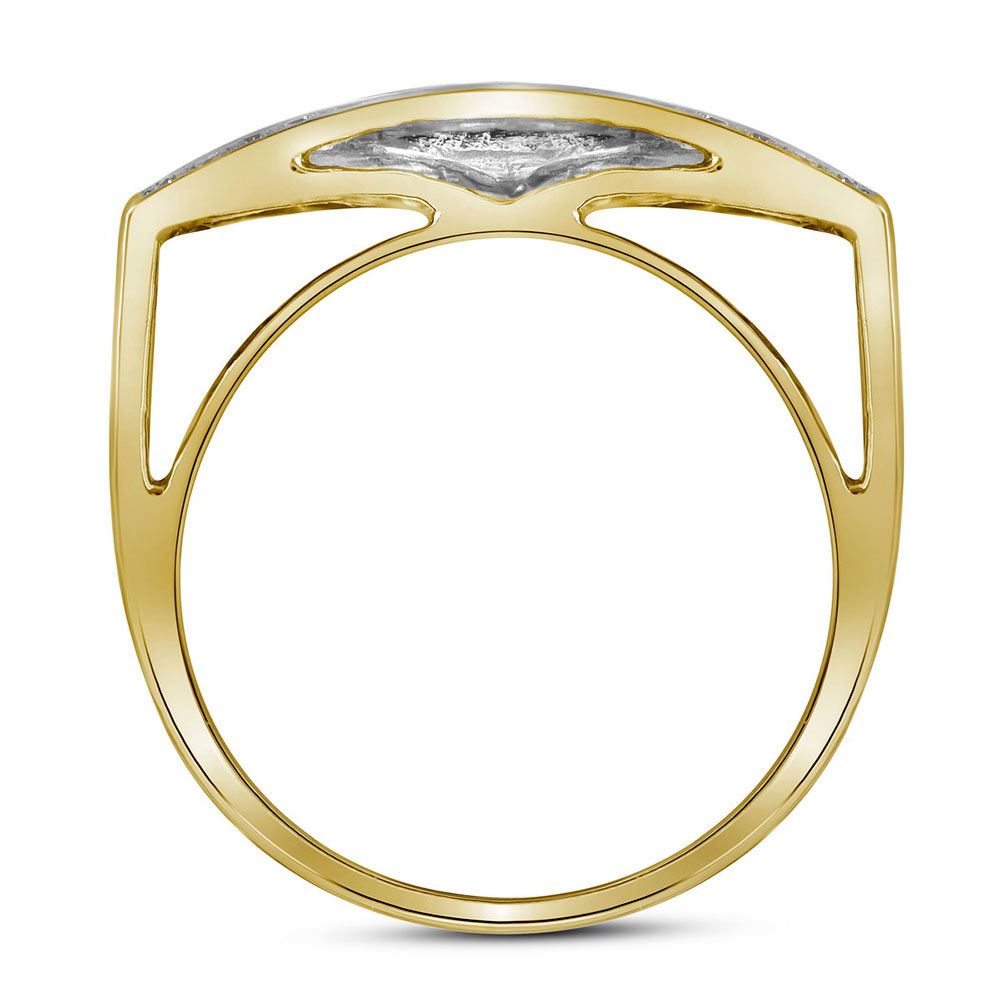 10kt Yellow Gold Mens Round Pave-set Diamond Rectangle Cluster Ring 1 Cttw.