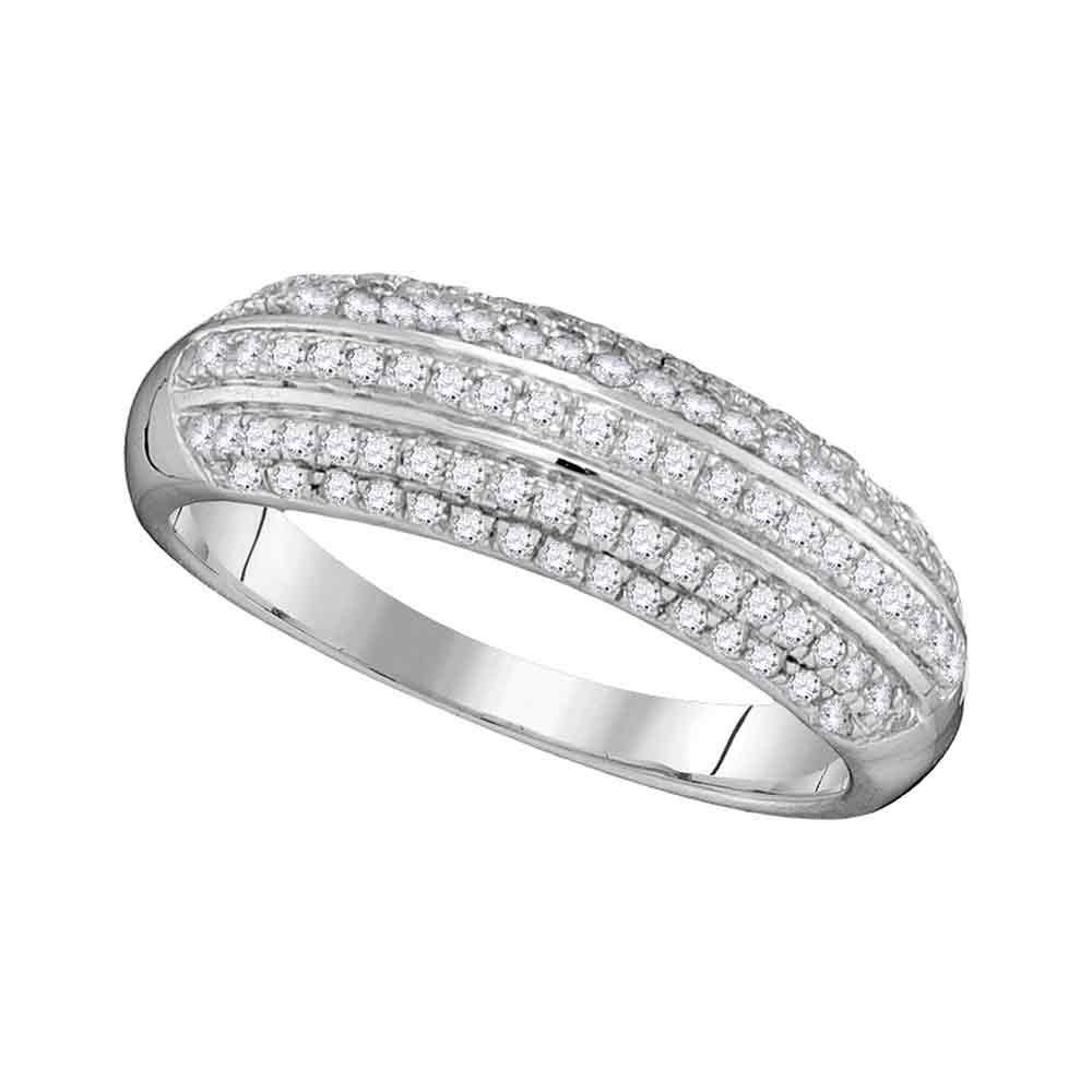 REF-29V1A - SKU: GD104057 ---- Round Pave-set Diamond Striped Band Ring 1/2 Cttw 10kt White Gold