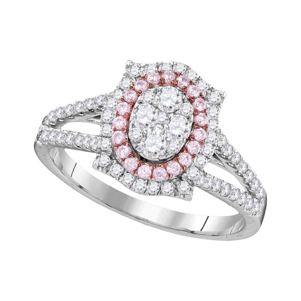 Round Pink Diamond Oval Cluster Ring 3/4 Cttw 14KT Two-tone Gold