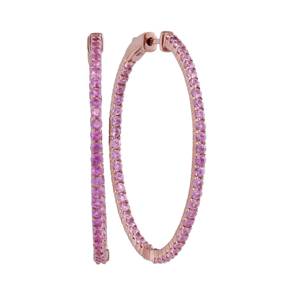 REF-109H1W - SKU: GD107248 ---- Round Pink Sapphire Slender Inside Outside Hoop Earrings 3-3/4 Cttw 14kt Rose Gold