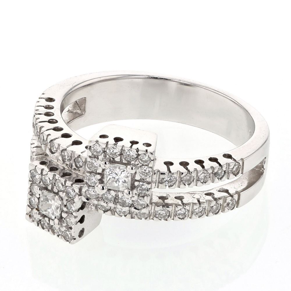 REF-141F5M ---- Round & Princess Split Shank Diamond Fashion Ring in 18K White Gold