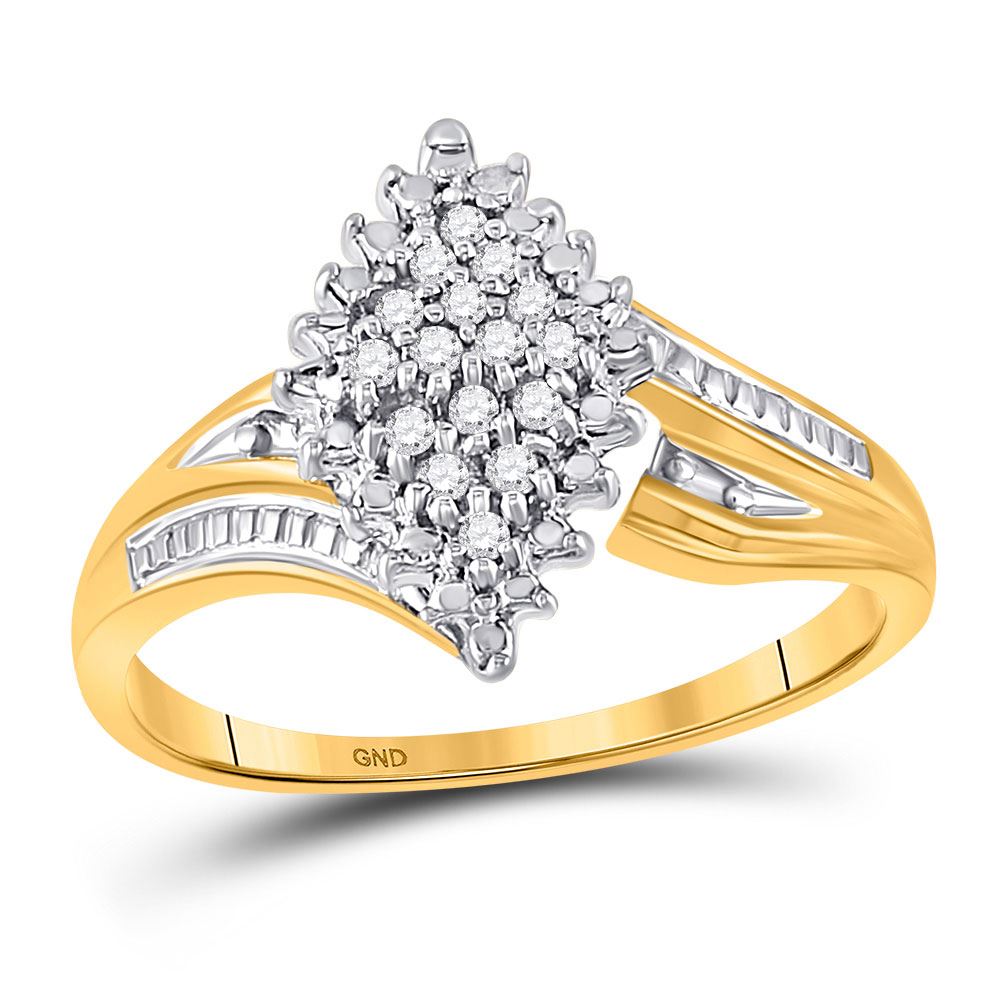REF-20M0X - SKU: GD15868 ---- Round Prong-set Diamond Oval Cluster Ring 1/8 Cttw 10kt Yellow Two-tone Gold
