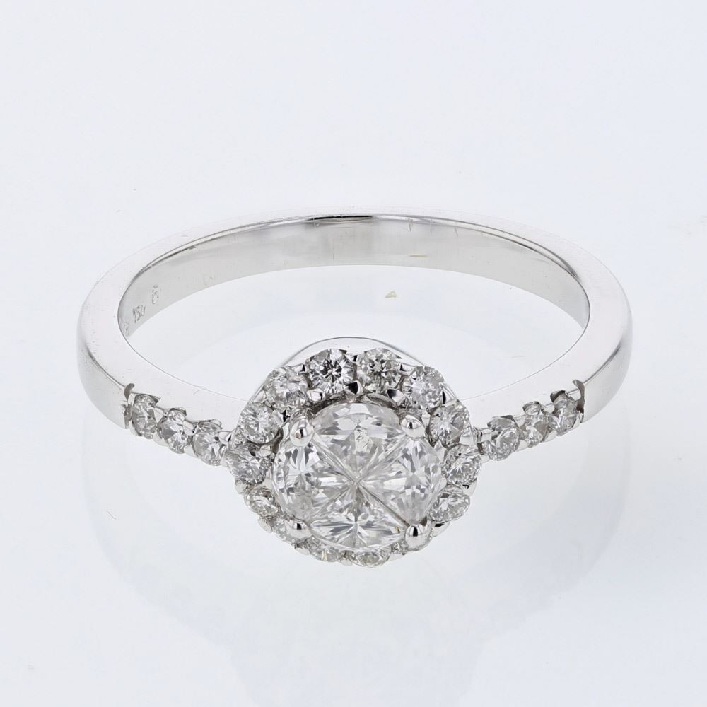 Round Prong-set Halo Diamond Ring in 18K White Gold