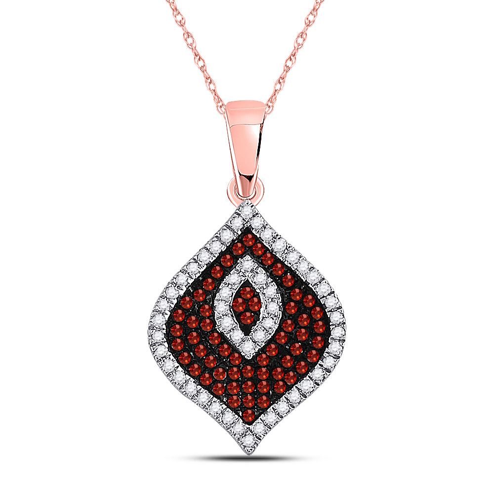 REF-30N9F - SKU: GD88407 ---- Round Red Color Enhanced Diamond Fashion Pendant 1/3 Cttw 10kt Rose Gold