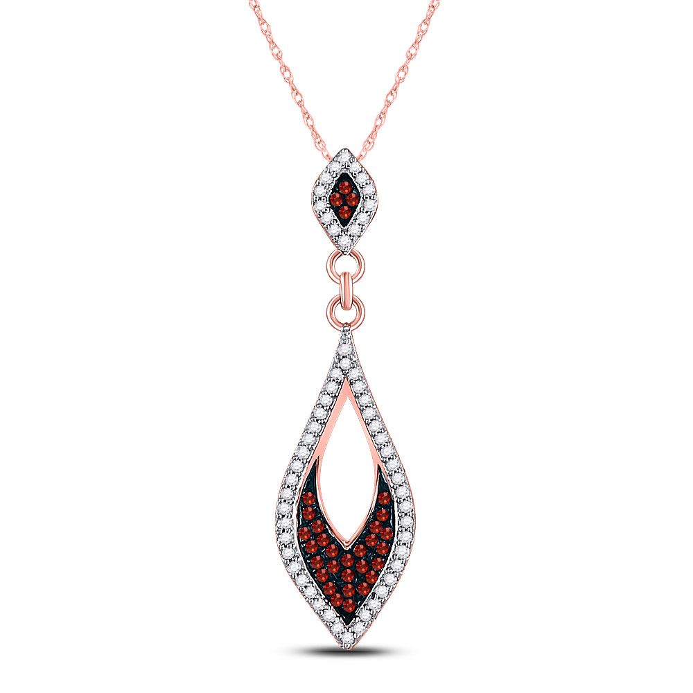 10kt Rose Gold Womens Round Red Color Enhanced Diamond Fashion Pendant 1/5 Cttw.