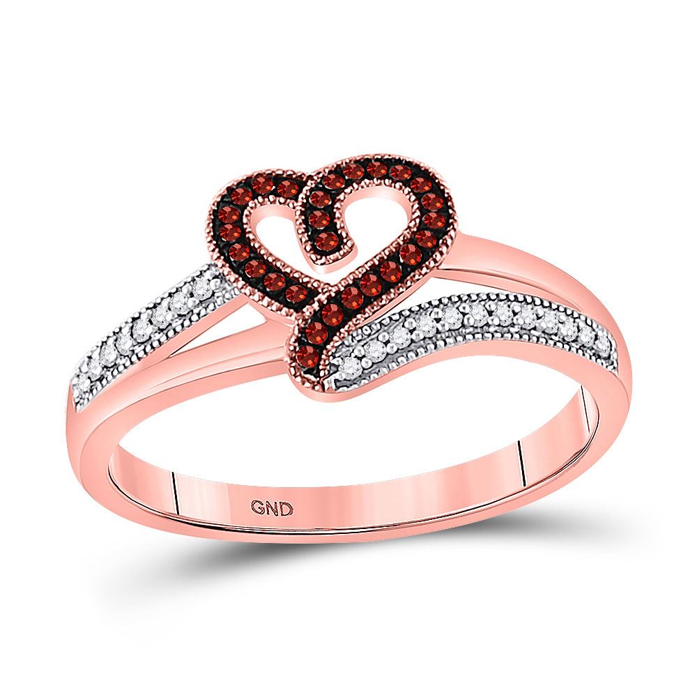 REF-22M7X - SKU: GD98572 ---- Round Red Color Enhanced Diamond Heart Ring 1/8 Cttw 10kt Rose Gold