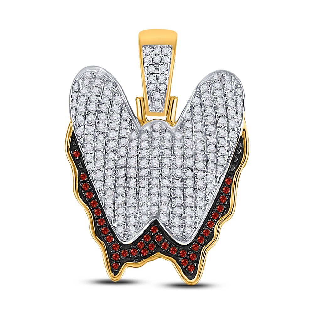 10kt Yellow Gold Mens Round Red Color Enhanced Diamond Letter W Blood Charm Pendant 5/8 Cttw.