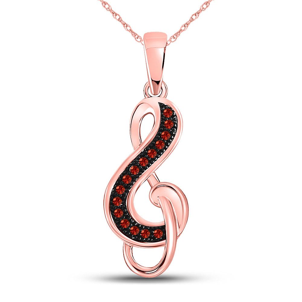 REF-9A1V - SKU: GD93530 ---- Round Red Color Enhanced Diamond Treble Clef Pendant 1/20 Cttw 10kt Rose Gold