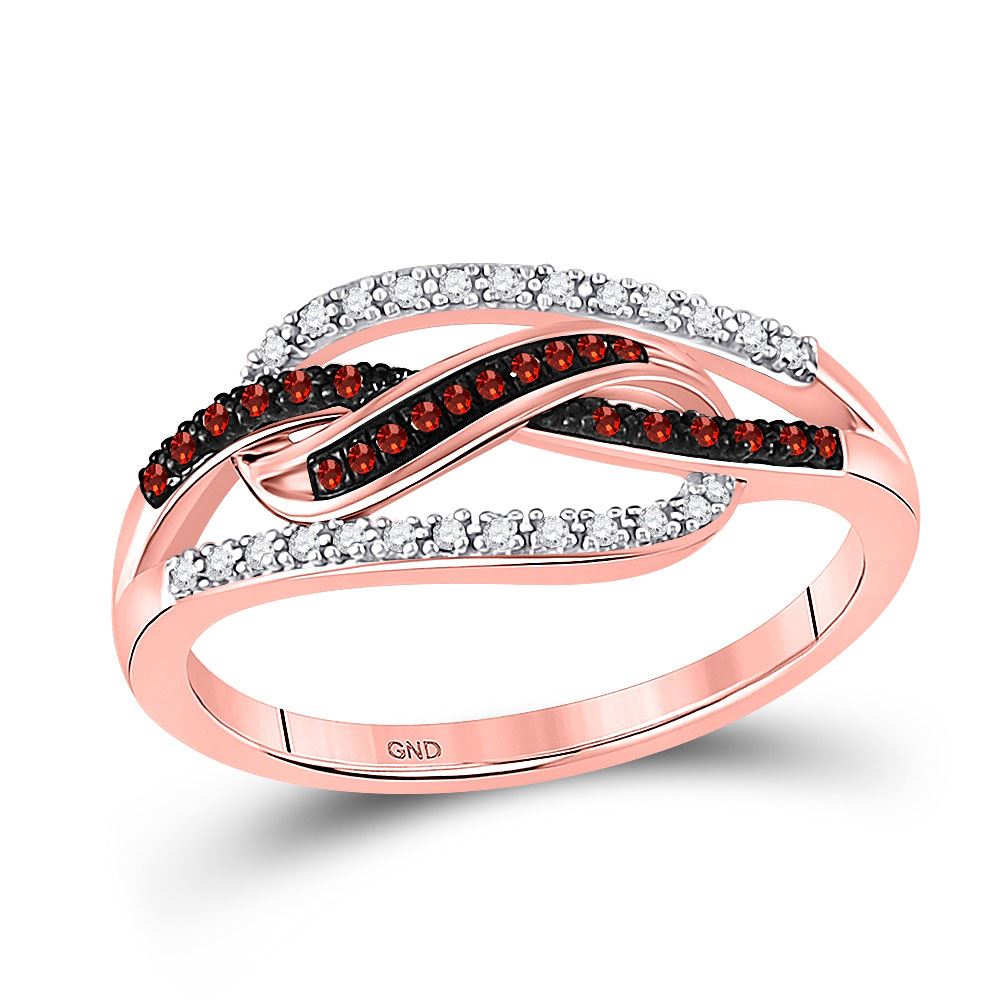 10kt Rose Gold Womens Round Red Color Enhanced Diamond Woven Fashion Ring 1/6 Cttw.