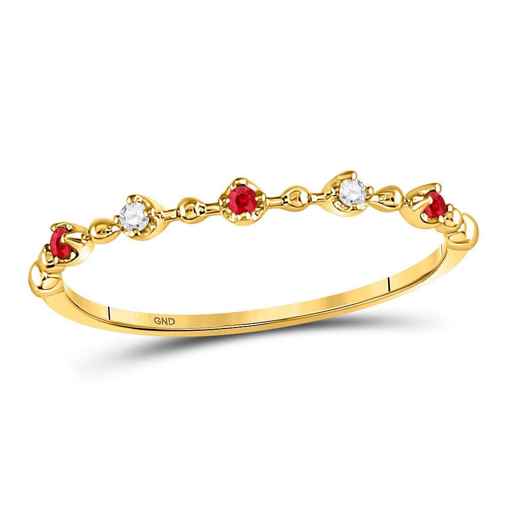 REF-10M0X - SKU: GD127777 ---- Round Ruby Diamond Beaded Stackable Band Ring 1/20 Cttw 10kt Yellow Gold