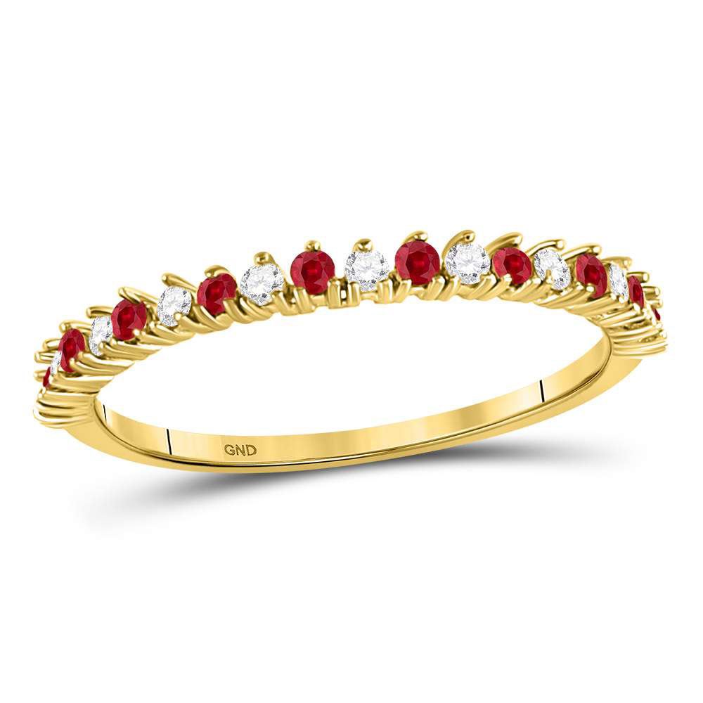 REF-13W6H - SKU: GD127934 ---- Round Ruby Modern Alternating Stackable Band Ring 1/4 Cttw 10kt Yellow Gold