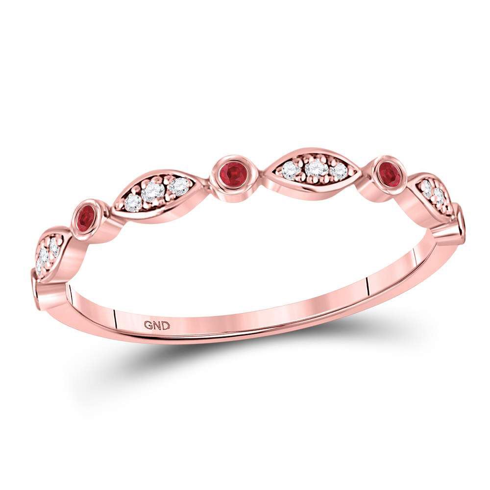 REF-14X5Y - SKU: GD127875 ---- Round Ruby Oval Dot Stackable Band Ring 1/10 Cttw 10kt Rose Gold