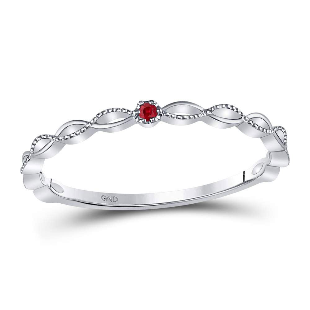 REF-8K2R - SKU: GD127790 ---- Round Ruby Solitaire Stackable Band Ring .01 Cttw 10kt White Gold