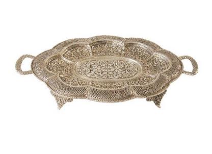Round Serving Tray - Sterling Silver Hand Made Heavily 41.80 Oz (1300 Grams) Approximate "Timeless Treasure" by Shakuntalam Silvercraft.