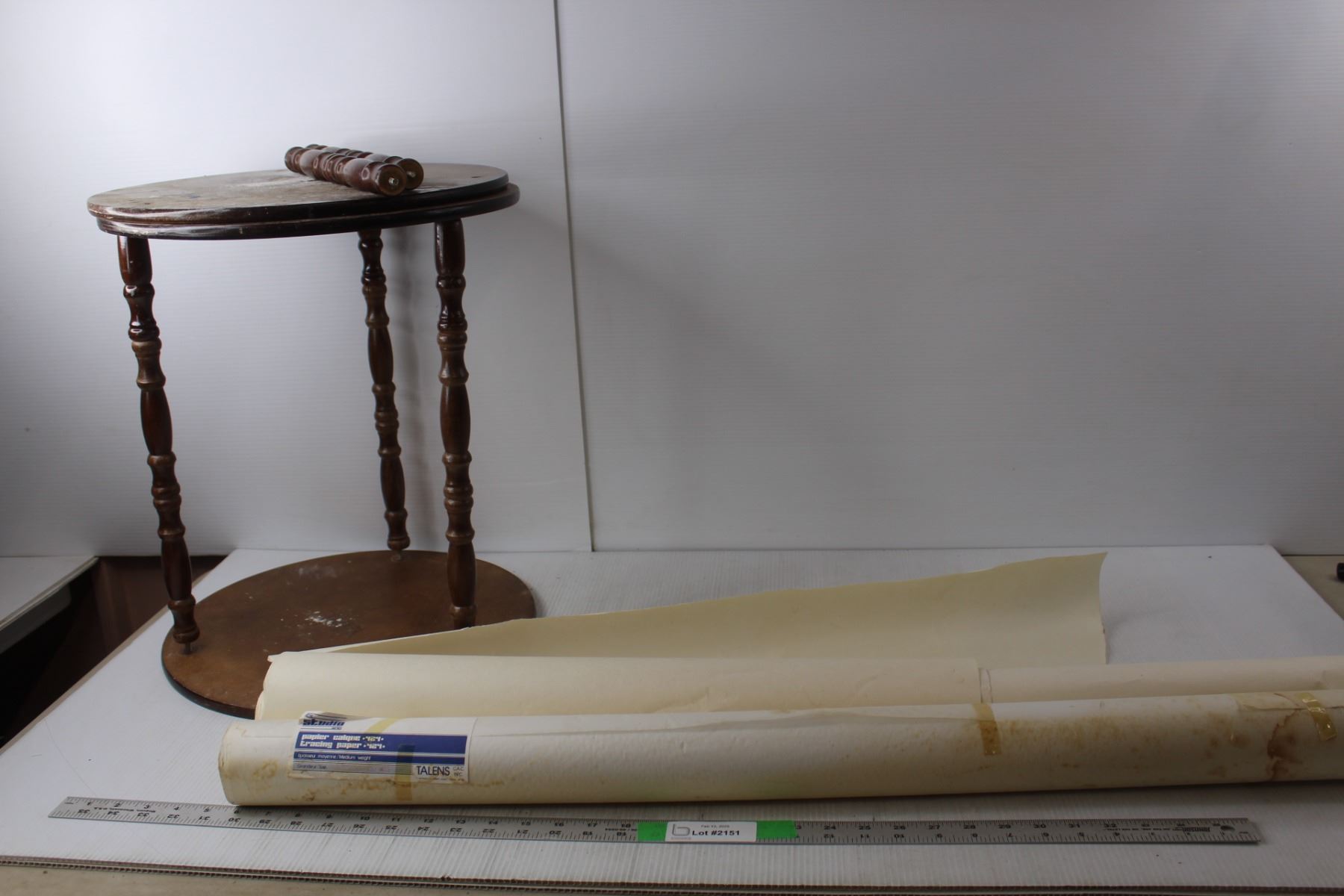 Round Tiered Wooden Shelf Up to 30" Tall, As Is and (2) Rolls of Tracing Paper