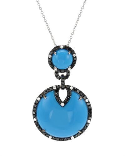 Round Turquoise w/ Diamonds Slider w/ Chain in 14K White Gold | 421098 Grams, featuring 8.3 Black Diamond Round ct 2 0.56 White Diamond Round ct 67 0.1 ct 14 14 ct