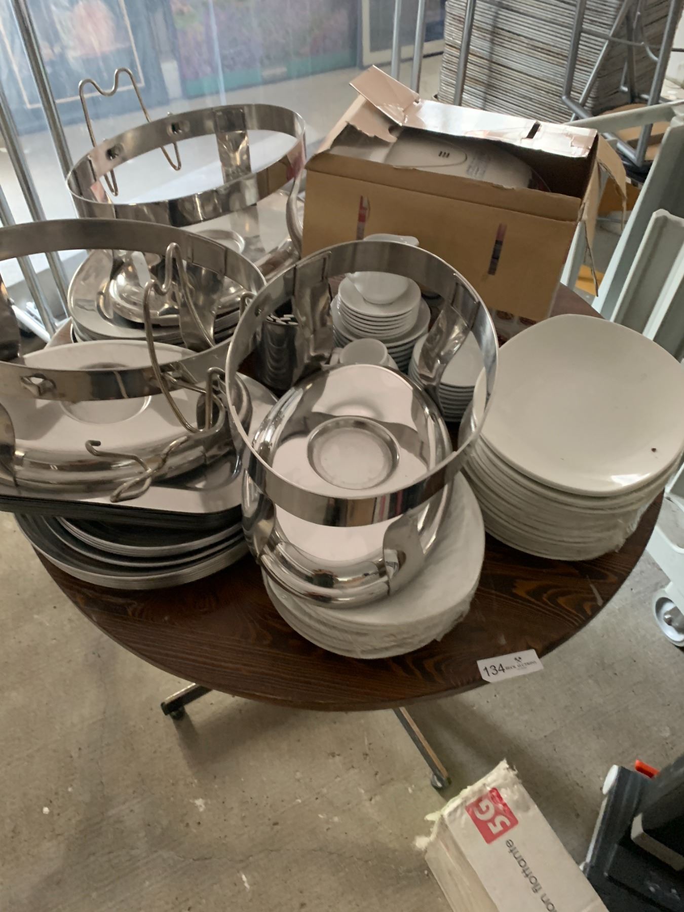 Round Wooden Table with Assortment of Madison's Grill Kitchen/Tableware