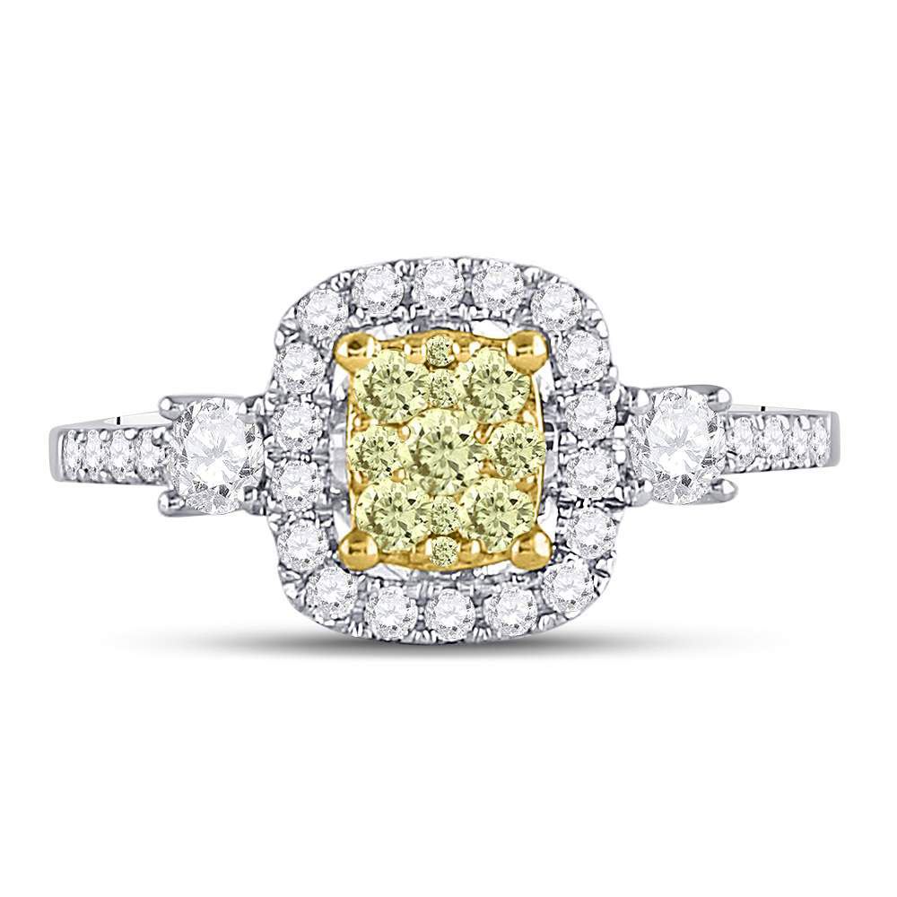 Round Yellow Diamond Square Frame Cluster Ring 5/8 Cttw 14KT Two-tone Gold