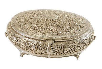 Round shape Jewelry Box - Hand Made Sterling Silver Round shape Jewelry Box/ Utility Box - 35 Oz (1100 Grams) Approximate "Timeless Treasure" by Shakuntalam Silvercraft.