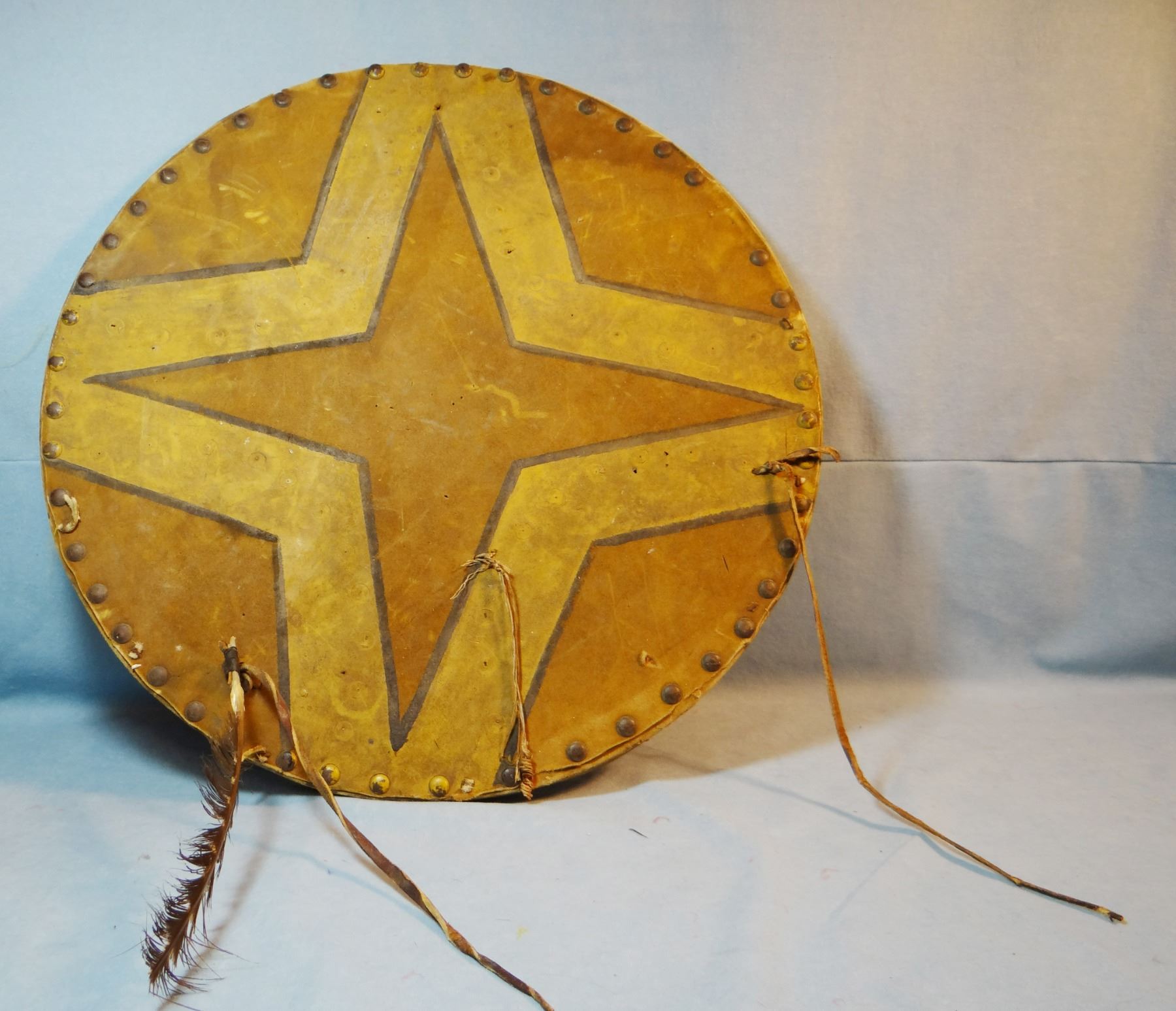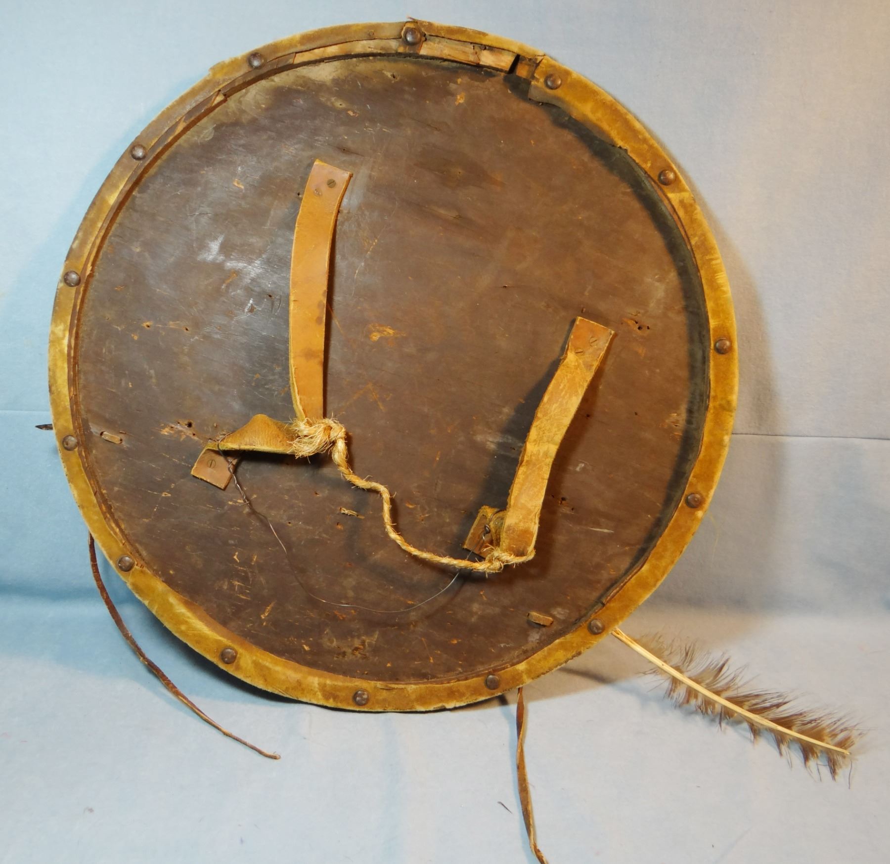 Round war shield, hide on wood, 20"