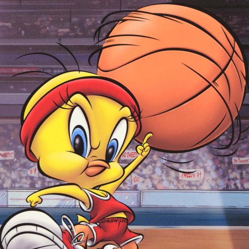 "Roundball Tweety" is a limited edition giclee on paper from Warner Bros., numbered with hologram seal of Authenticity. Also, includes Certificate of Authenticity! Measures approx. 16" x 20" (with border), 12" x 16" (image).