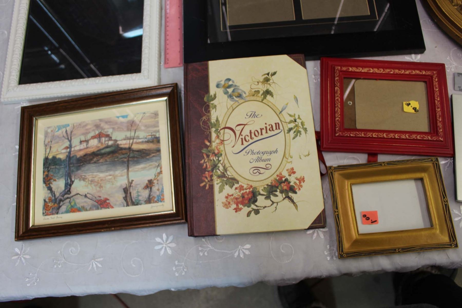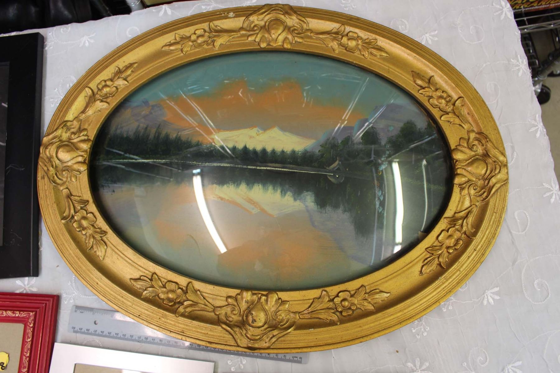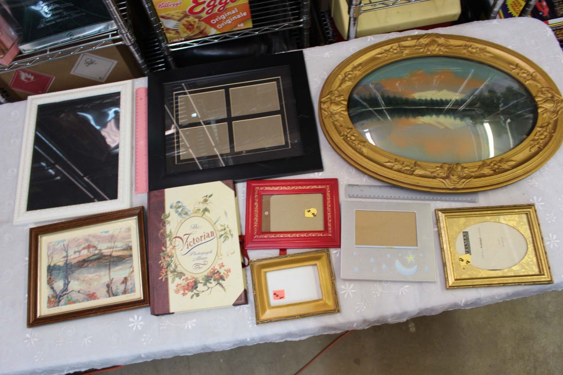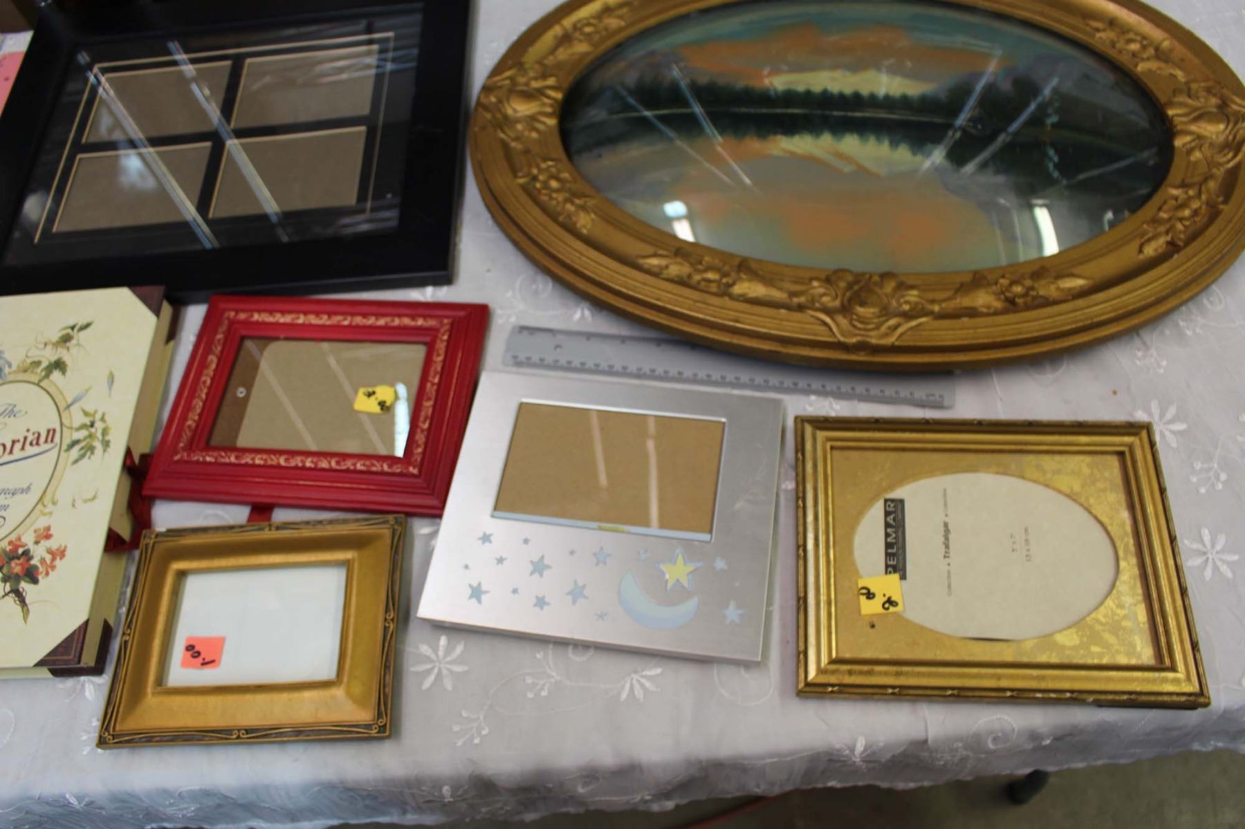 Rounded Glass Picture Frame W/ Lot Of Picture Frames