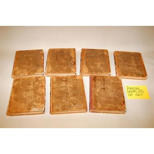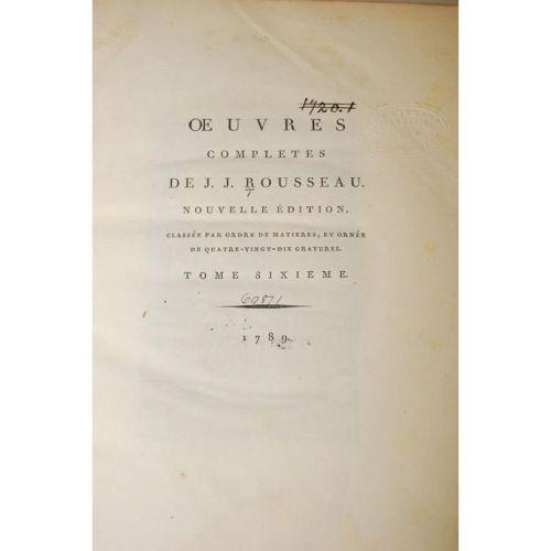 Rousseau, Jean Jacques. Oeuvres Completes - 38 Volumes. Paris: Hard Cover. Ex-Library. Fair to Good Condition. Nouvelle Edition 1788-1793. 8 inches by 10-1/2 inches. With 39 engraved title plates, 44 hand coloured engraved botanical plates, 13 engraved folding music plates and 44 engraved plates by Leoine, Pruneau, Frusotte et al., after Moreau, Boucher et al. The music volumes (#19-22) have been slightly trimmed are in library bindings, all others bound in leather with leather spine lables, all edges gilt with inner dentelles, on laid paper. Leather covers show peeling & flaking, occasional light foxing, occasional light damp mark on a few page edges, Vol. 8 lacks front cover, Vol. 1 lacks backstrip, Volumes 6 & 26 have library tape over backstrips, a few have backstrip chips. BINDINGS TIGHT.