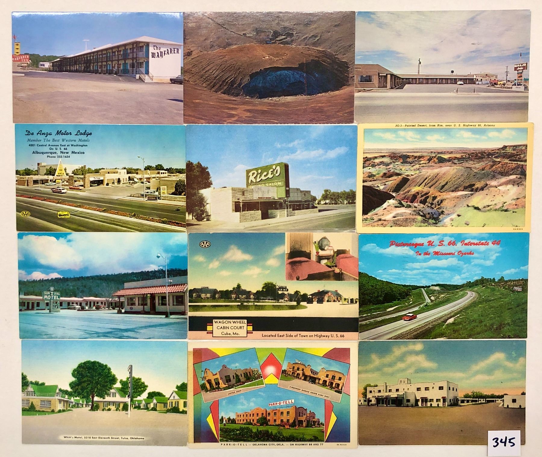 Approx. 40 Rt. 66 postcards. Linen to standard size chrome.