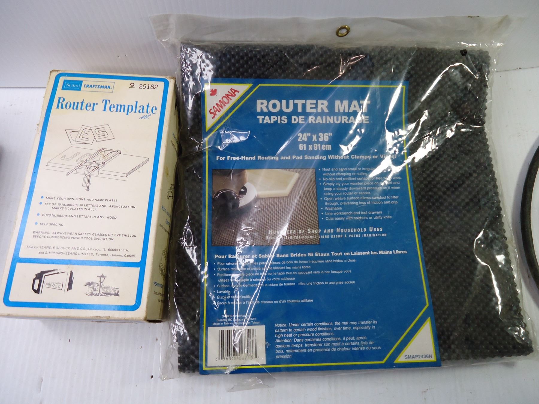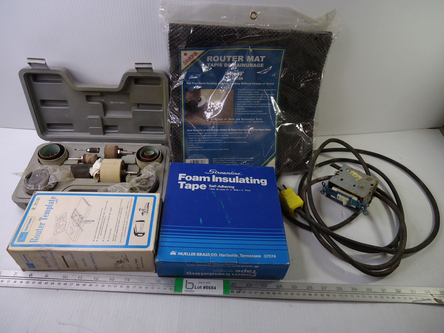 Router Mat, Template, Foam Insulating Tape, Sanding Drum Set(used) and electrical switch