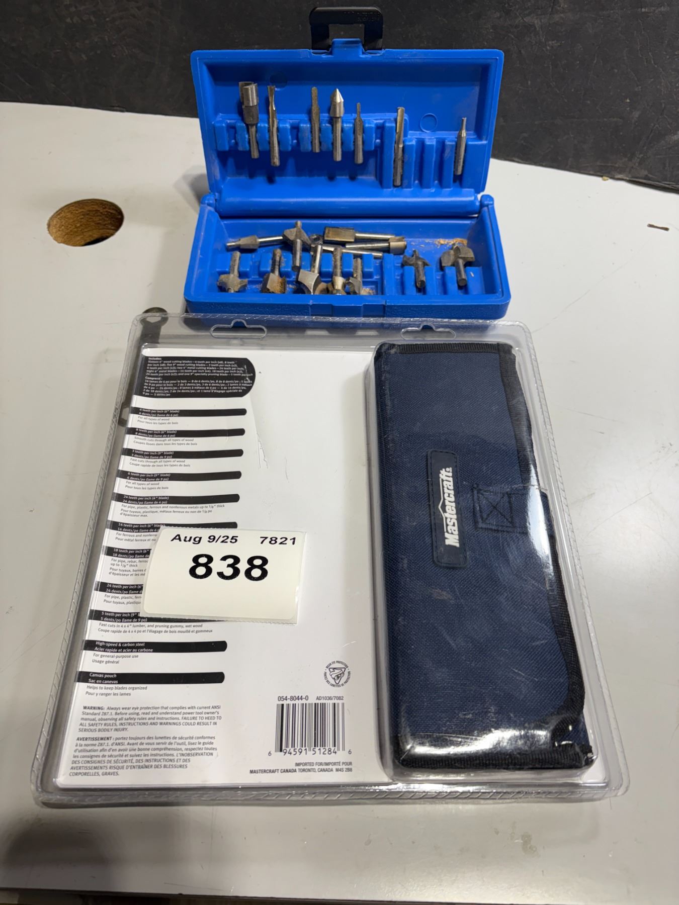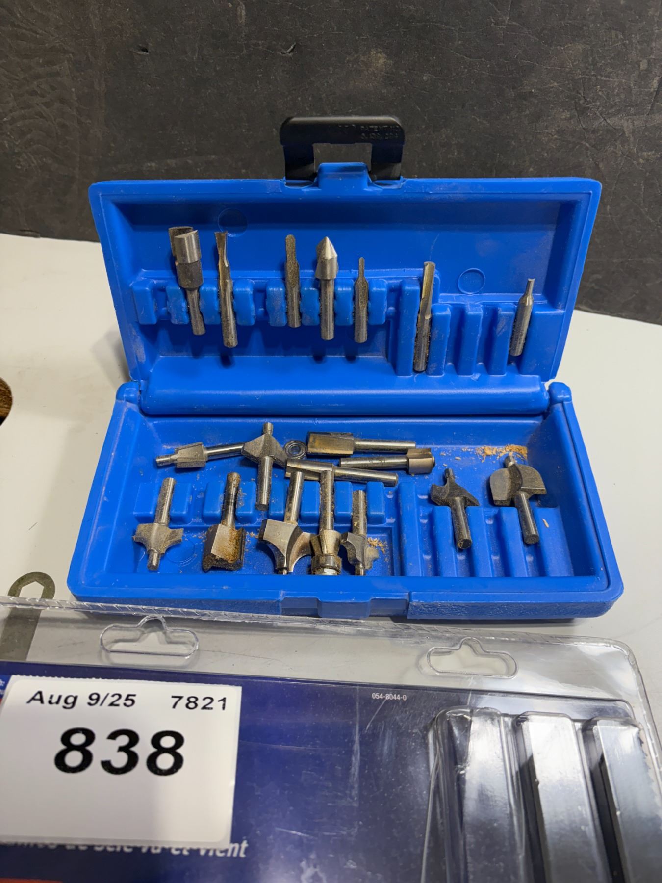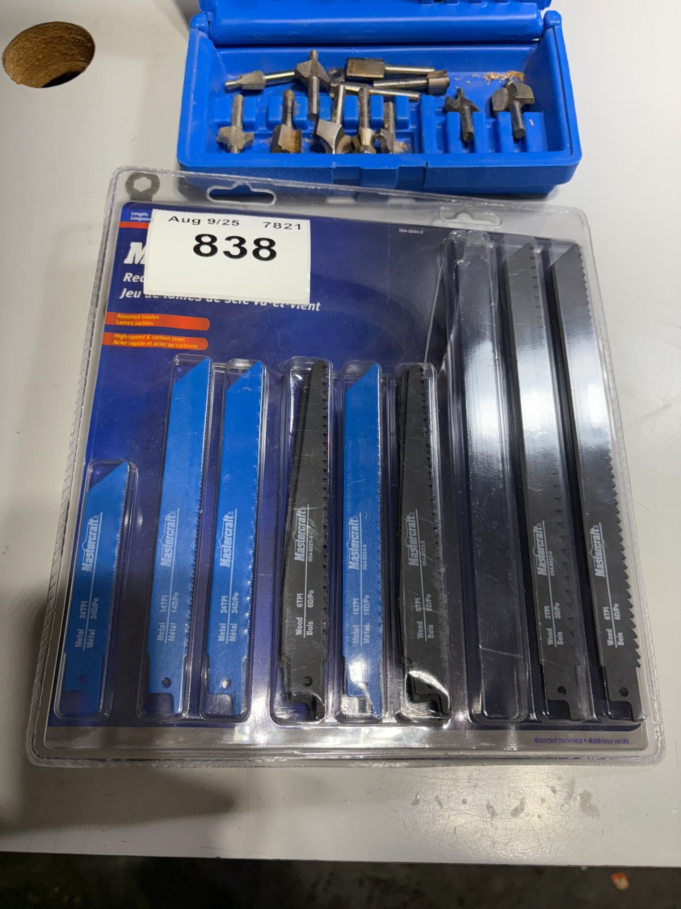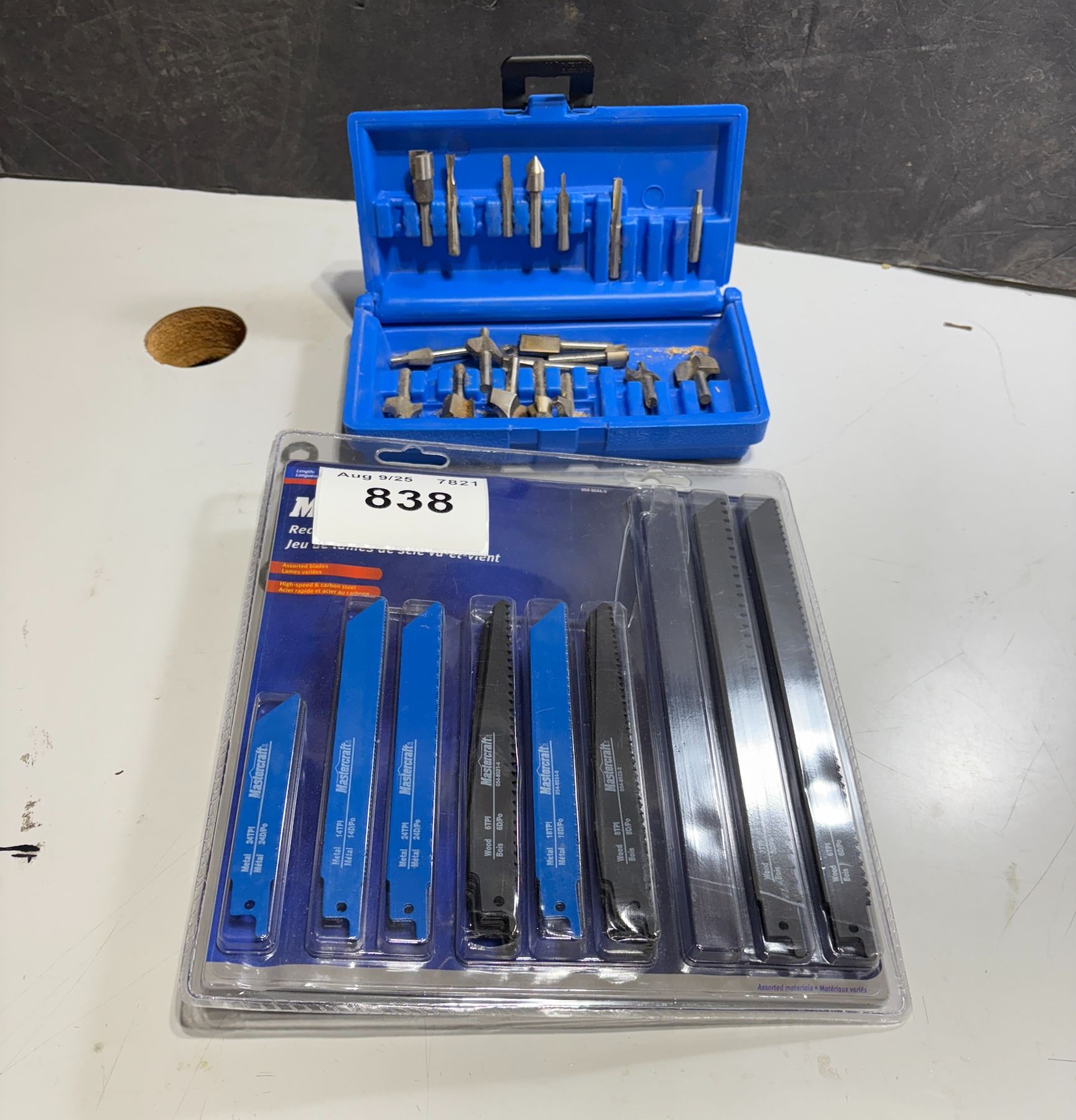 Router, bits, and assortment of sawzall blades
