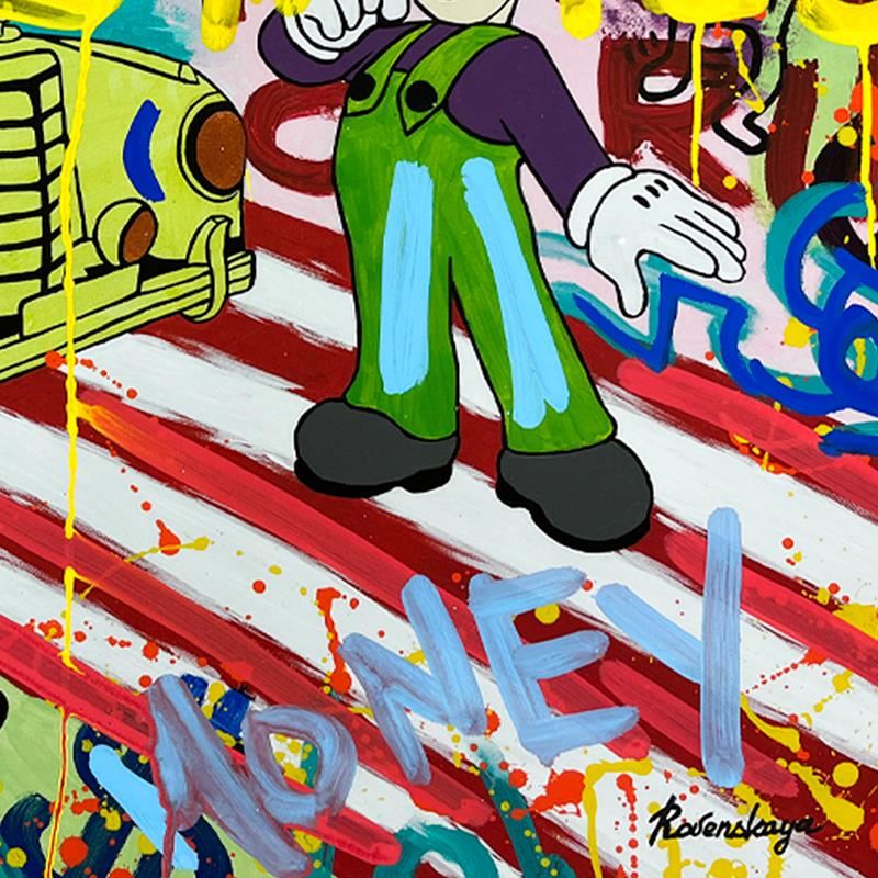 "About To Drive" is a one-of-a-kind mixed media on deckle edge paper by Nastya Rovenskaya; hand signed by the artist. This piece comes custom framed and includes letter of authenticity. Measures approximately 30" x 36" (framed), 24" x 30" (image).