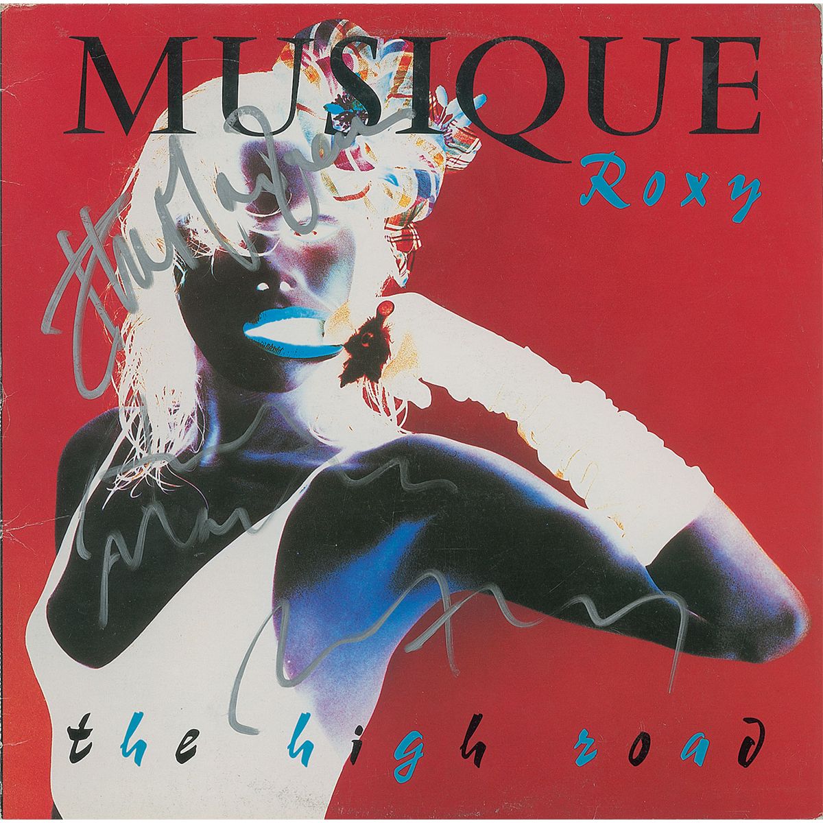 The High Road EP album signed on the front cover in silver ink by Bryan Ferry, Andy MacKay, and Phil Manzanera. In fine condition, with MacKay’s signature a shade light. The record is not included.