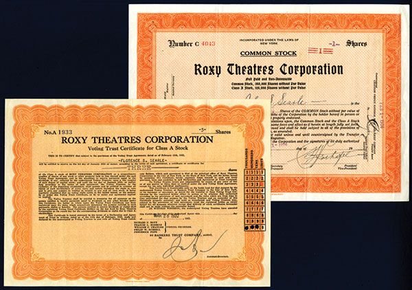 New York. 1926. 1 I/U Stock. #C4043. 3 Shares I/U voting certificate. #A1933. Black print with orange borders and underprint. No vignettes. VF condition lot of 2. Broun Green Co. (stock). ABNC (voting cert.)