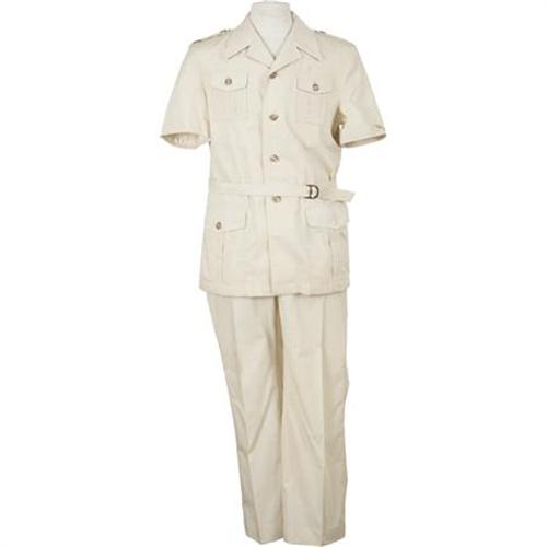 <B>Roy Acuff Safari Suit.</B></I> A cotton-blend safari jacket with matching pants, owned and worn by the Country music star. In Excellent condition, and accompanied by a b&w 8" x 10" photo of Acuff wearing the outfit.<BR><BR><b>Shipping:</b> Clothing, Costumes & Jerseys (<a target="_blank" href="http://www.heritageauctions.com/common/shipping.php">view shipping information</a>)