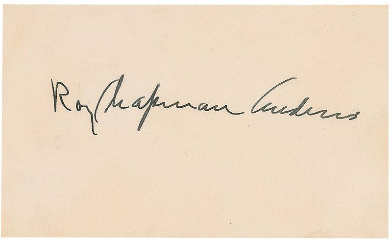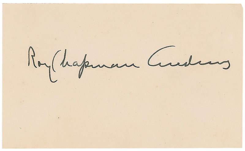 American explorer and naturalist (1884–1960) whose far-flung adventures on archaeological expeditions in the Far East were said to have served as the inspiration for fictional screen hero Indiana Jones. Two fountain pen signatures, “Roy Chapman Andrews,” on individual off-white 5 x 3 slips. In fine condition.