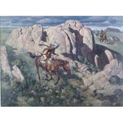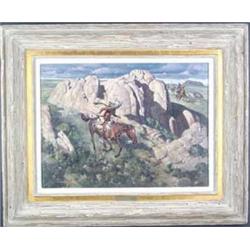 Roy Grinnell. (b.1933) (New Mexico) Oil on Canvas. "The Last Break." 18" x 24". signed lower left. Est $4,000 - $5,000.