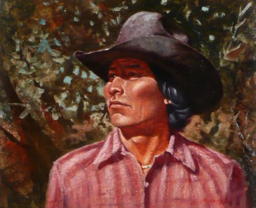 Roy Hampton (1923-1997) Oil on Board "Navajo Bronc Rider" Signed lower right 20" x 24" (Sale of this item will benefit Palmer Land Trust)