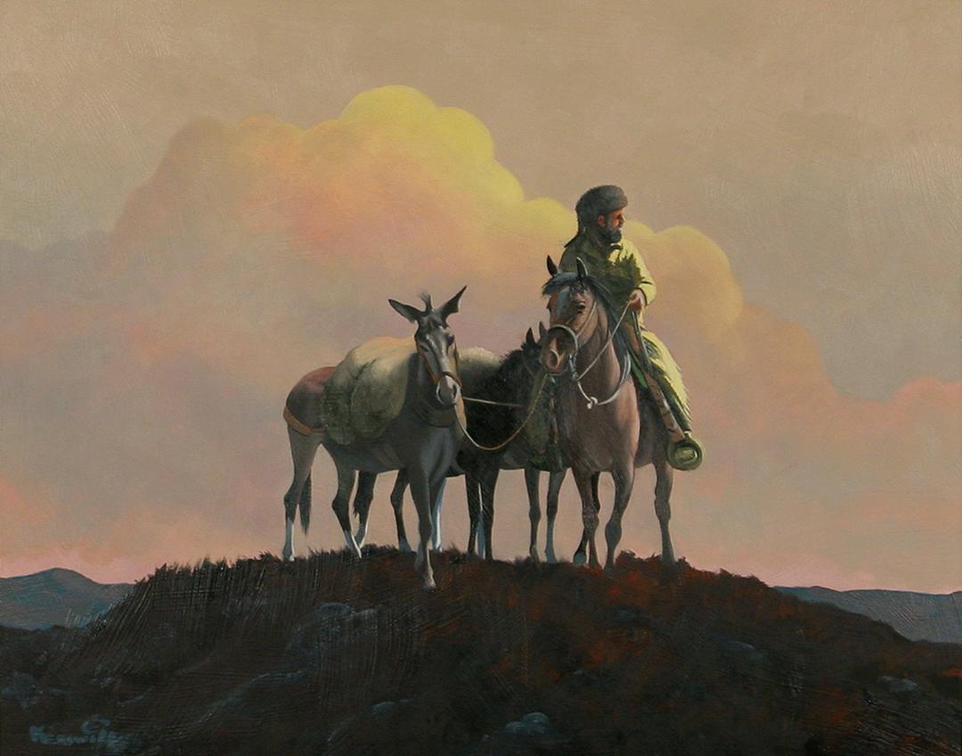 Roy Kerswill (1925-2002) Oil on Board, "Time To Camp", 16" x 20", signed lower left.