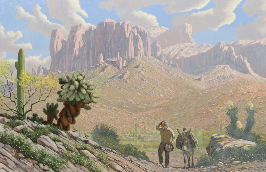 Roy Kerswill (1925-2002). Gold Is Where You Find It. 40" x 60" oil on canvas. signed lower left. (est $6,000-8,000). For condition reports please visit: www.auctioninsantafe.com/cr2011.pdf