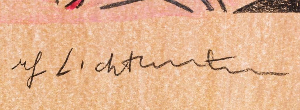 Mixed media on paper. Featuring a portrait of a woman, exclaiming, "OH. JEFF I LOVE YOU. TOO BUT ..." Signed Roy Lichtenstein on the lower edge. Attributed to Roy Lichtenstein (1923-1997, American). 29.5 x 21 cm (11.75 x 8.25 inches)
