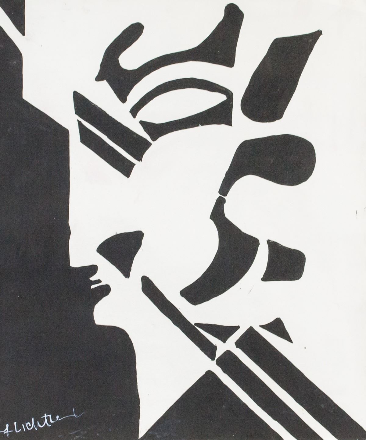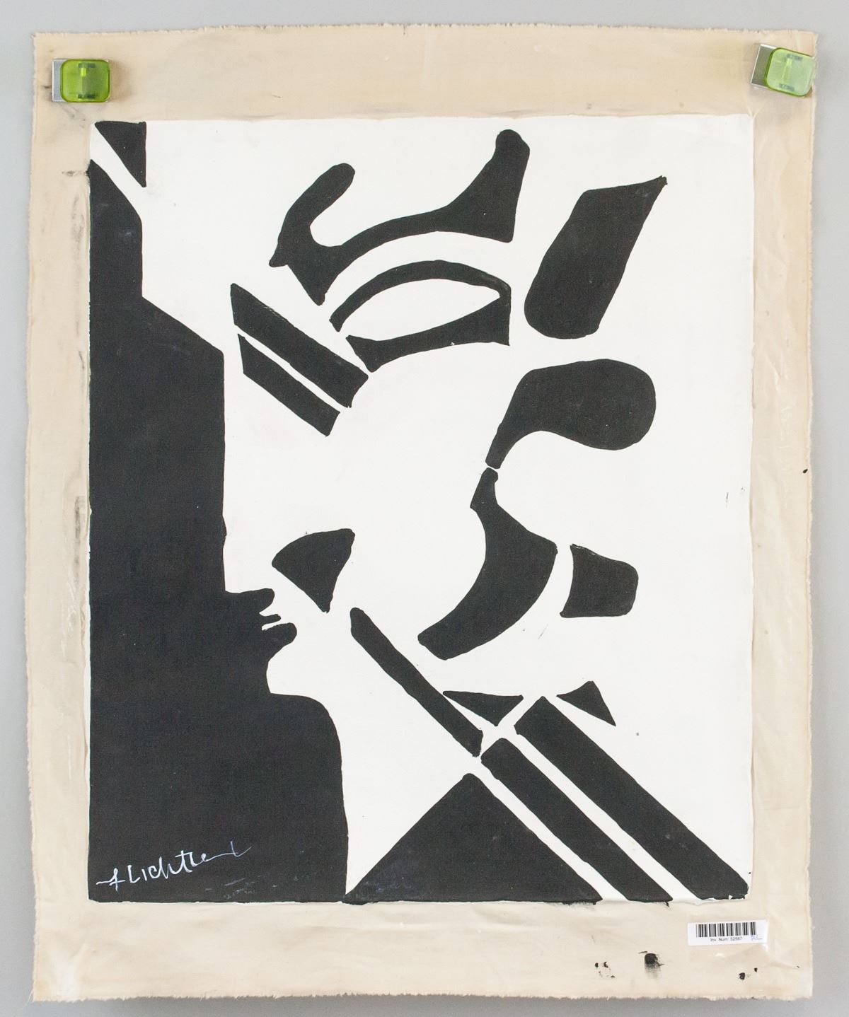 Oil on canvas. Featuring a black and white abstract composition. Signed "R. Lichtenstein" in the bottom left corner. Attributed to Roy Lichtenstein (1923-1997, American). 43 x 37 cm (17 x 14.5 inches). Provenance: This lot carries limited provenance from an Upper New York estate.
