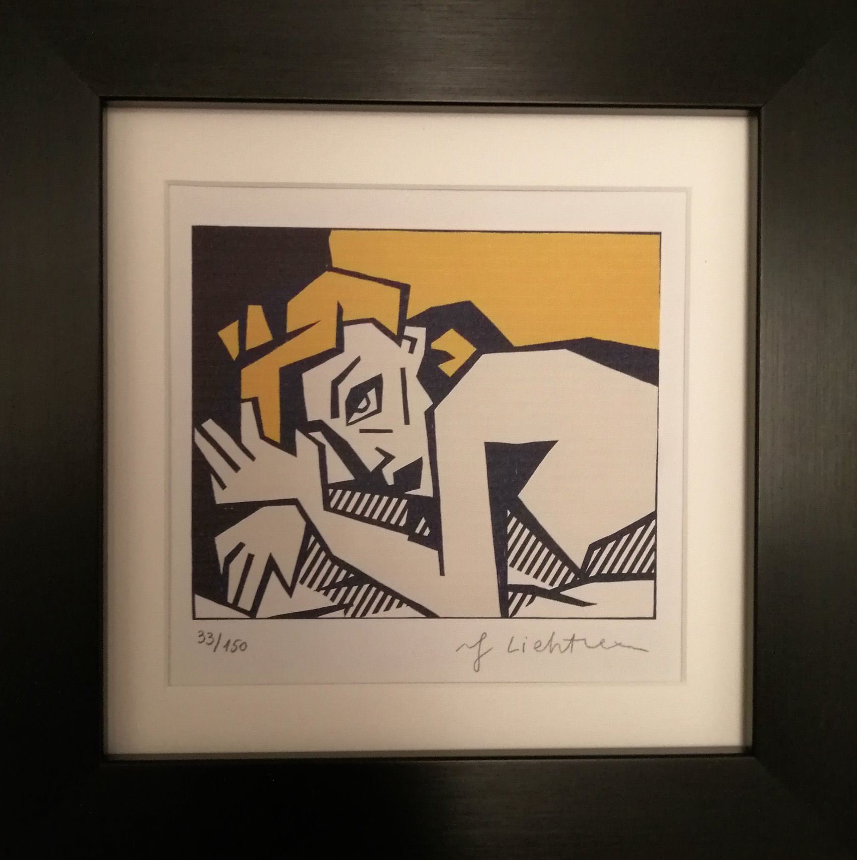 Roy Lichtenstein (1923-1997). Signed and editioned lithograph of 150. Size:6.25 x 6.25 inches. Mounted and framed and supplied with coa.