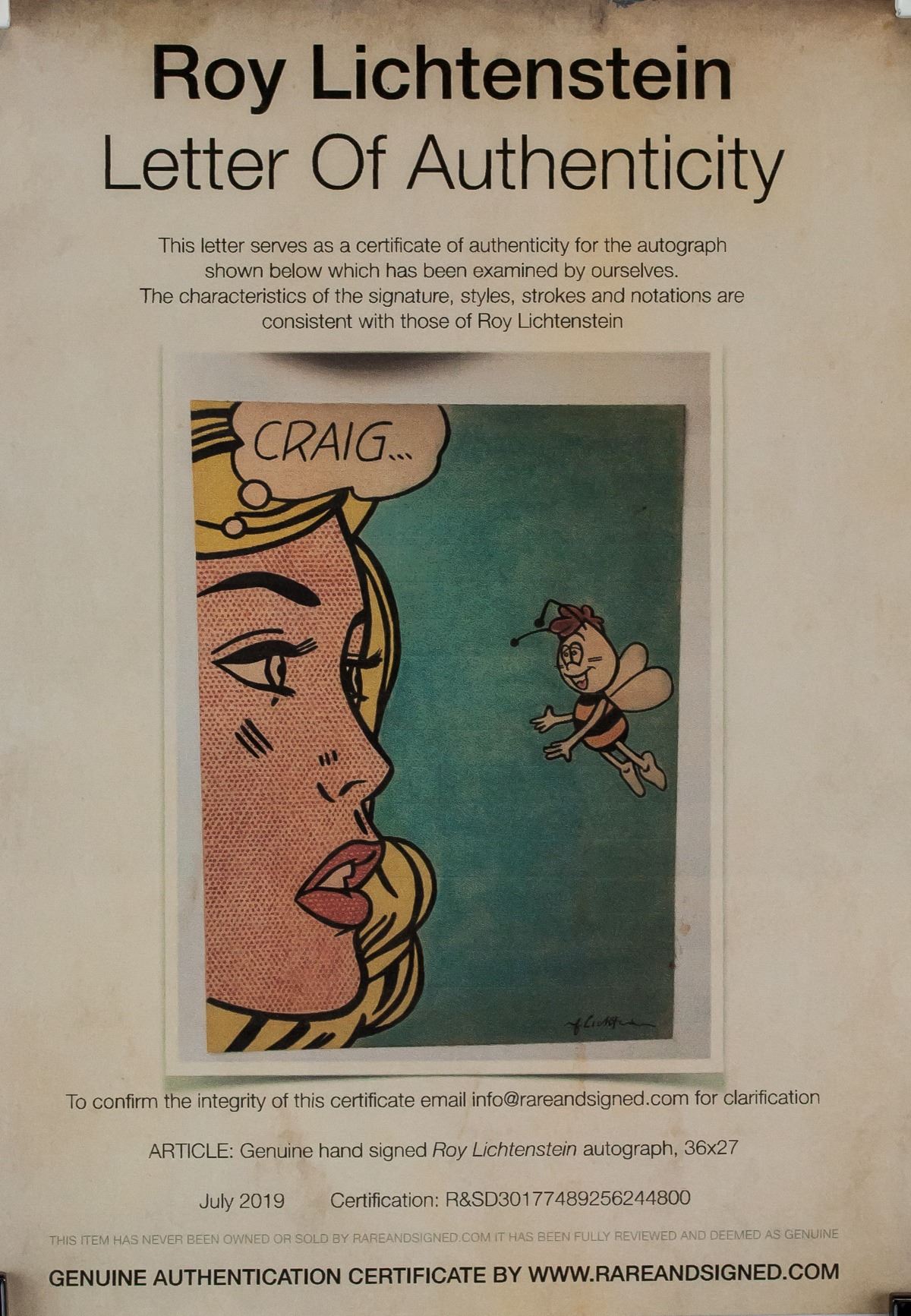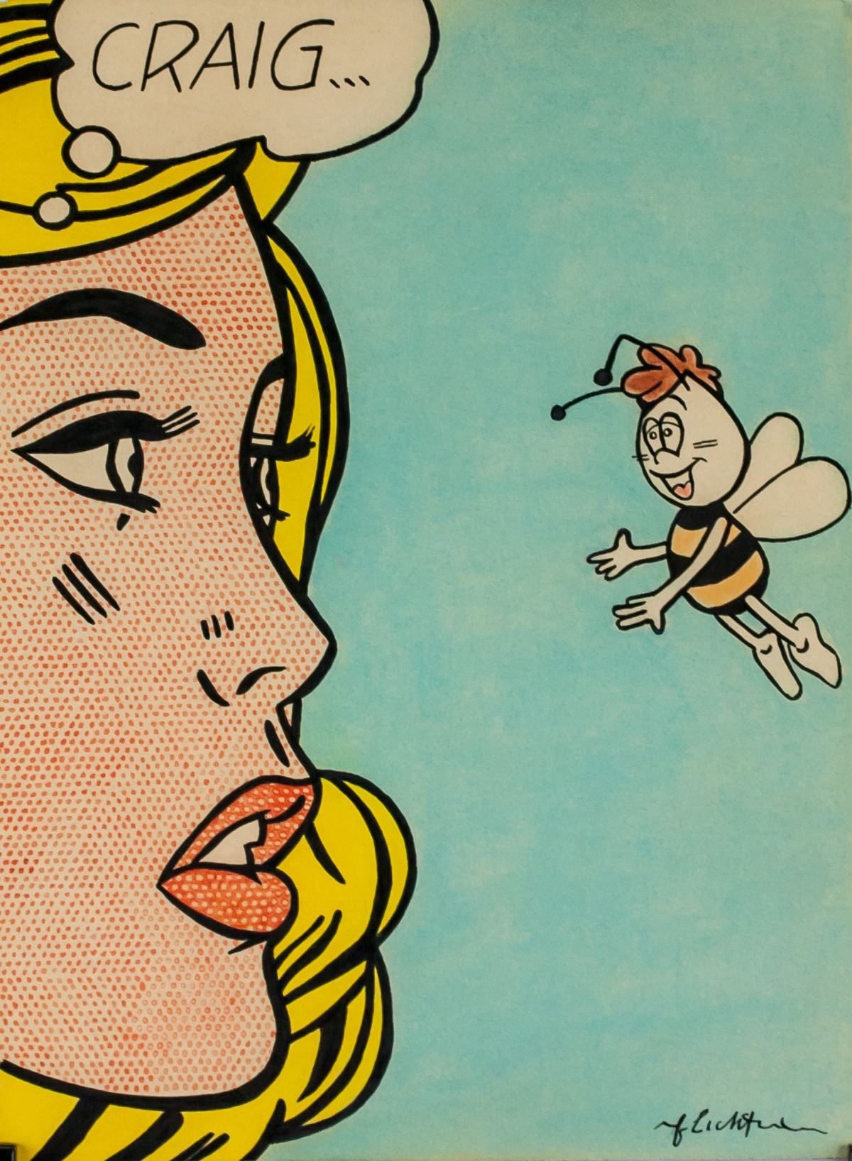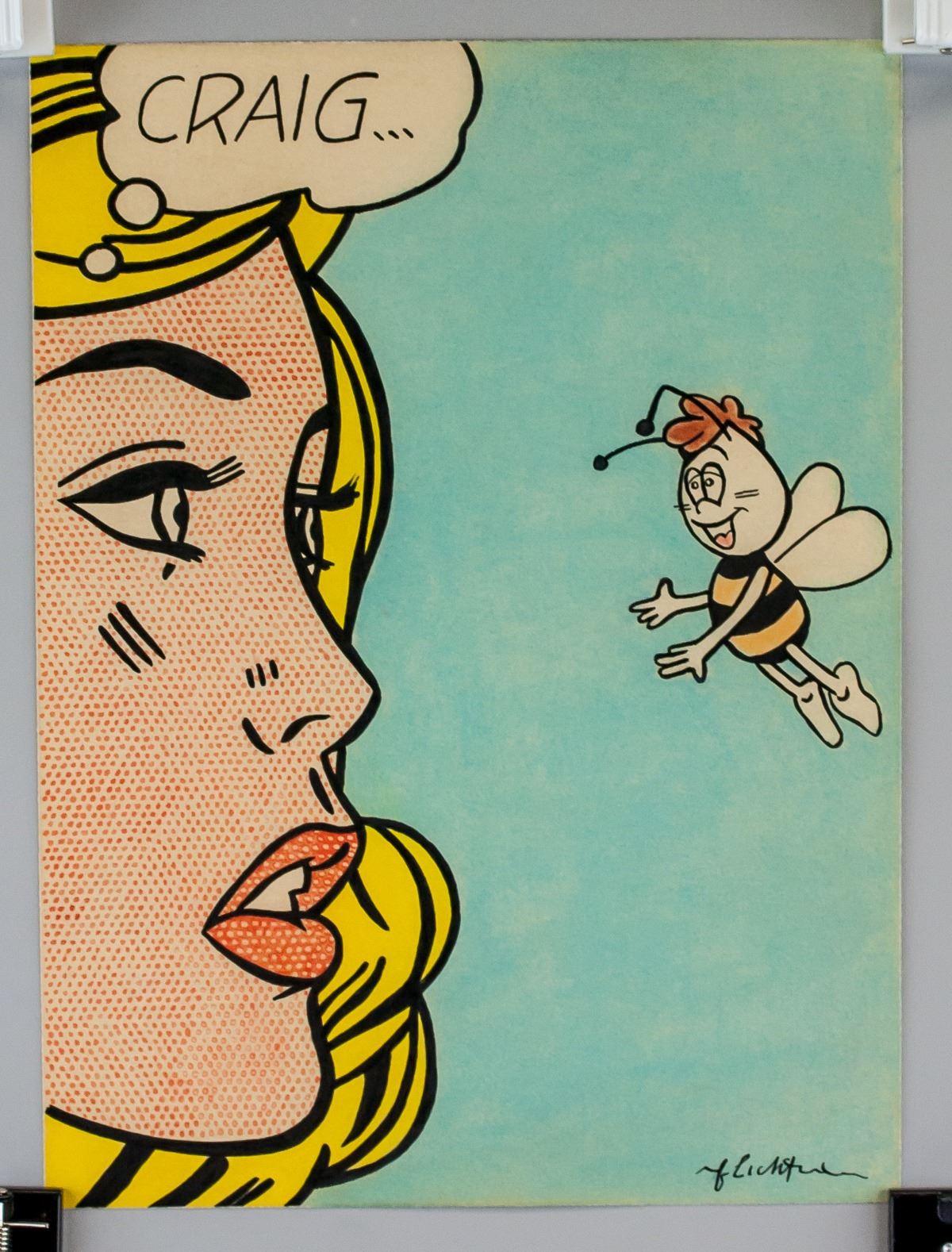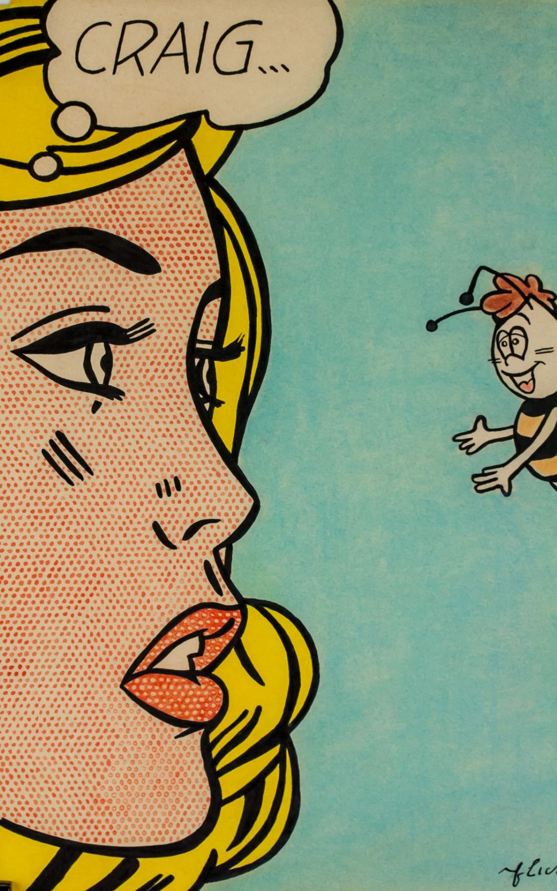 Mixed media on paper. Featuring a portrait of a woman exclaiming, "CRAIG..." Signed Roy Lichtenstein on the lower right corner. Stamped LICHTENSTEIN PERSPECTIVE / WASHINGTON and signed Roy Lichtenstein on the lower left corner and inscribed '89 to the right of the signature. Attributed to Roy Lichtenstein (1923-1997, American). 36 x 27 cm, (14.25 x 10.5 in). Accompanied with a letter of authenticity. PROVENANCE: This lot carries limited provenance from a Private French collection