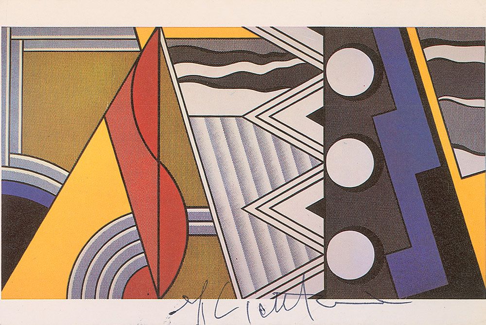 Color postcard of Lichtenstein’s 1967 work entitled ‘Modern Painting with Clef,’ 6 x 4, signed in the lower border in blue ballpoint. In fine condition.