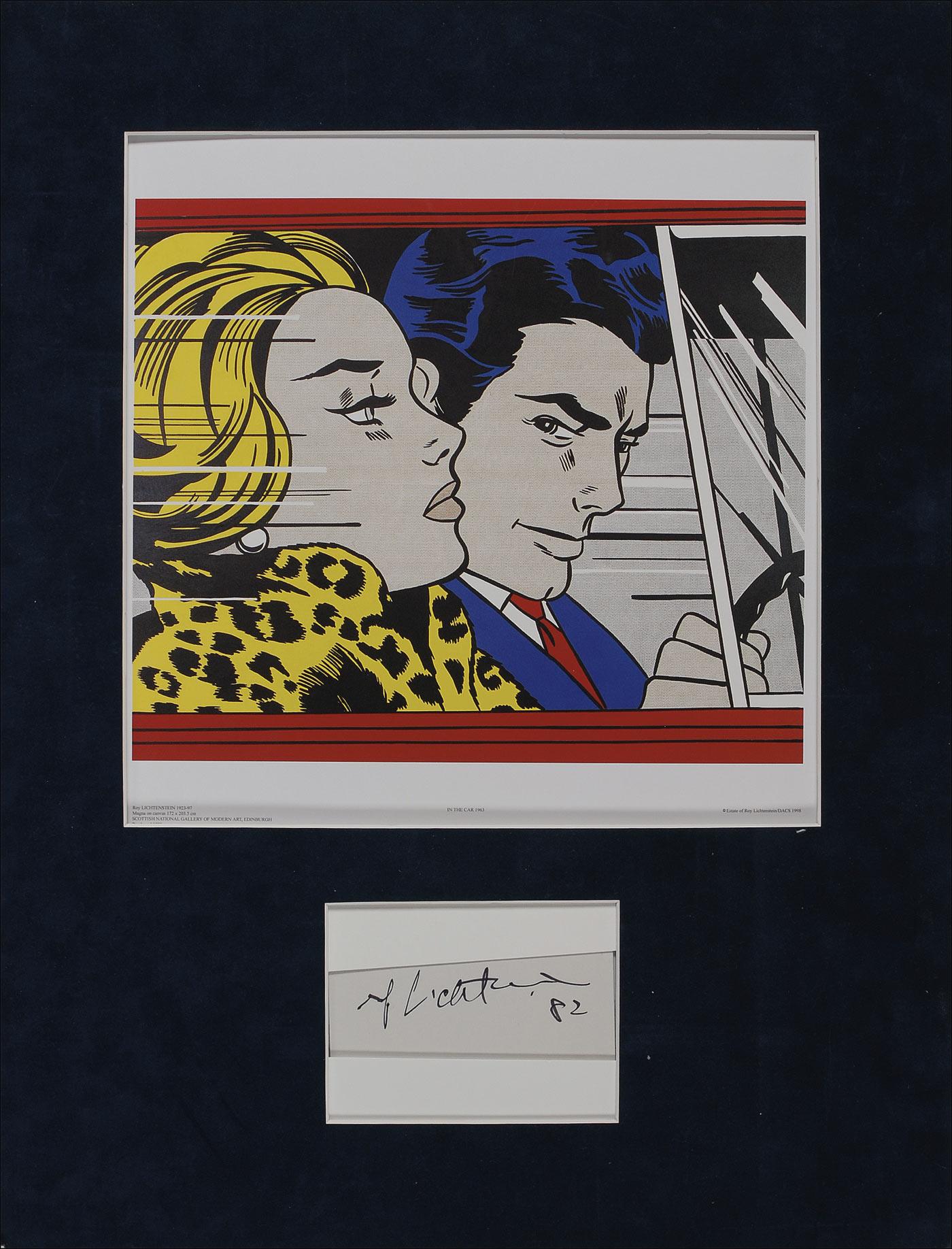 Felt tip signature, “Roy Lichtenstein ‘82,” on an off-white 5 x 3 card. Cloth matted with a color print. In very fine condition. RRAuction COA.